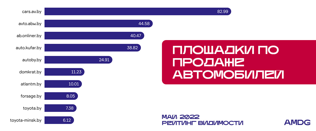 Ab.onliner.by разместился на третьей строчке с падением видимости на 9,25%. На 9-м и 10-м местах есть изменения: сайты toyota.by и toyota-minsk.by с показатемями 7,38% и 6,12% впервые за всю историю рейтинга вошли в ТОП-10.