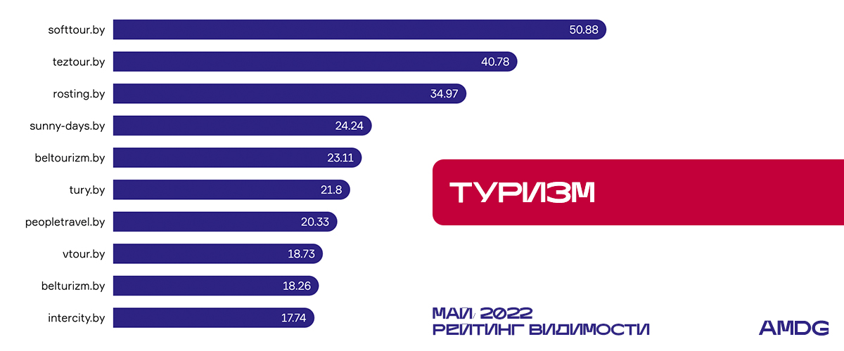 Здесь произошла очередная смена лидера: softtour.by вернул себе первое место +2,55% и сместил teztour.by на вторую позицию. Sunny-days.by вырос на 1,19% и теперь находится на четвертом месте. Vtour.by, который в свою очередь потерял 7,48%, оказался на восьмой строчке рейтинга.
