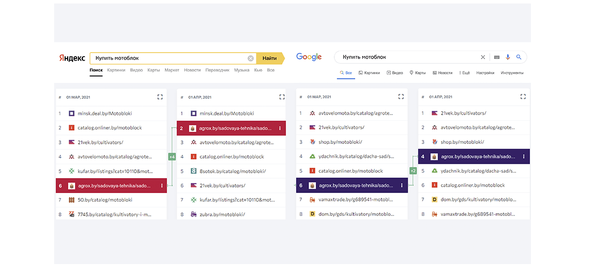 Agrox.by прибавил +13,37% и сместил 7745.by и Ydachnik.by. Такой рост не случайный и связан с положительной динамикой запросов как в Яндексе, так и в Google.
