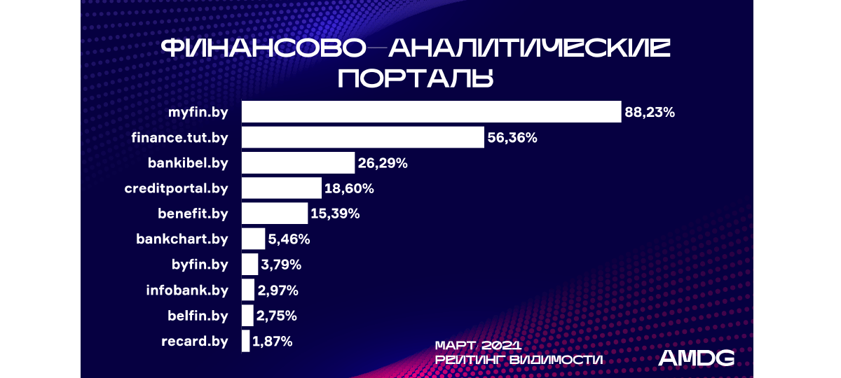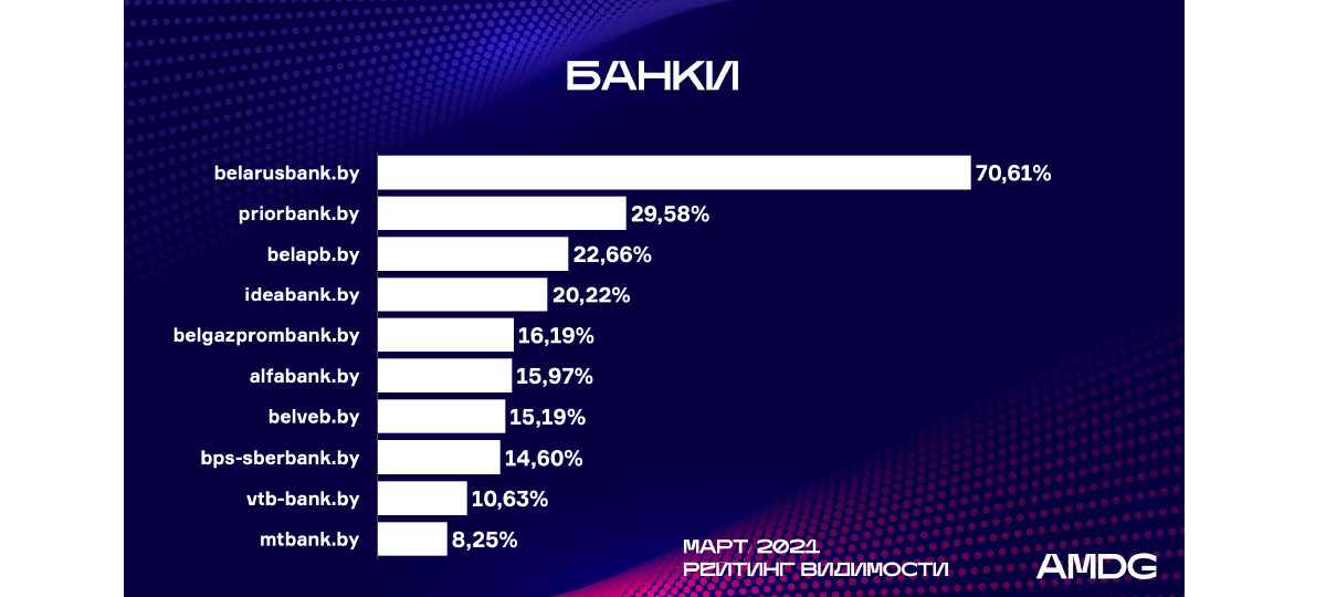 Альфа-Банк и БПС-Сбербанк смещаются вниз из-за снижения видимости, что дает возможность Белгазпромбанку подняться на +2 строки. Банк ВТБ продолжает наращивать видимость (+2,82%) и перемещается на строку вверх.