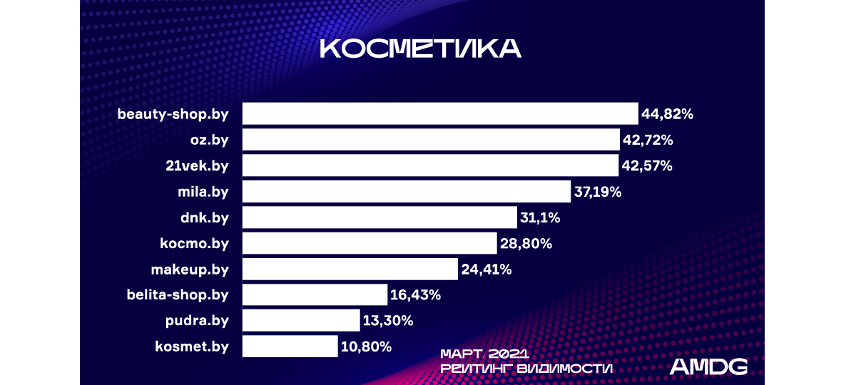 Новый лидер категории – интернет-магазин Beauty-shop.by, которому удалось обойти Oz.by и 21vek.by.